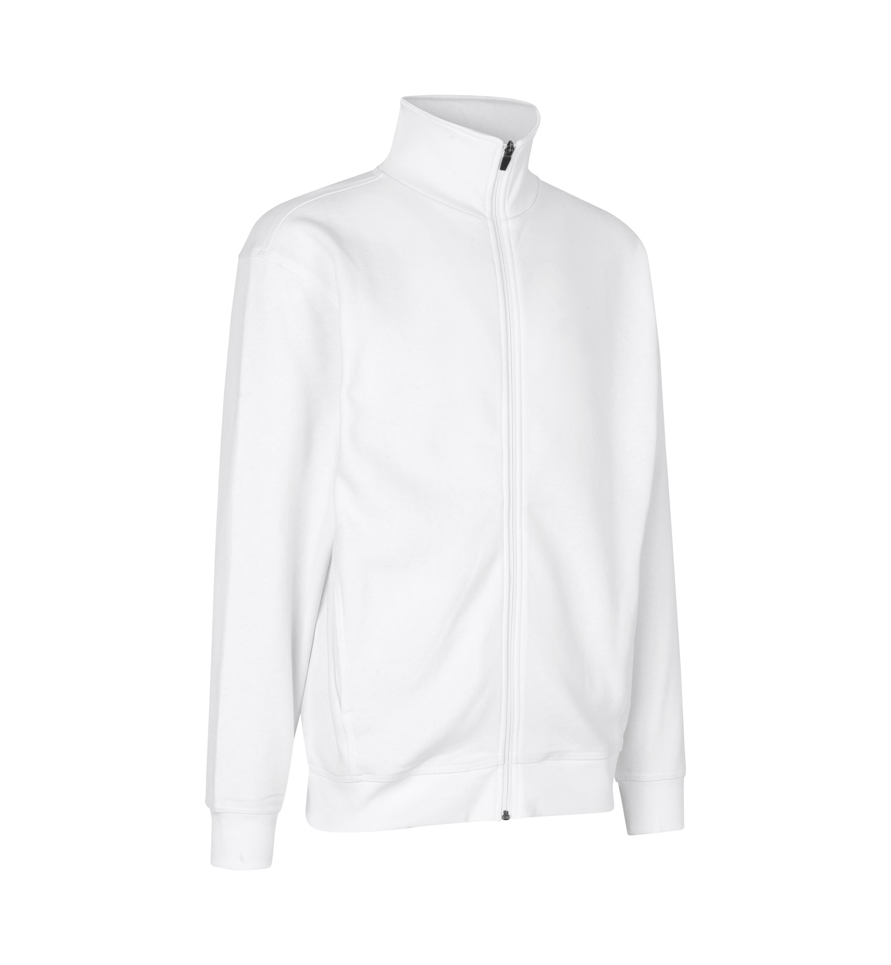 Cardigan i kraftig kvalitet med gennemgående lynlås og to stiklommer. Nakkebånd, rib ved ærme og bund og smarte flatlock-stikninger. Blød, børstet inderside.