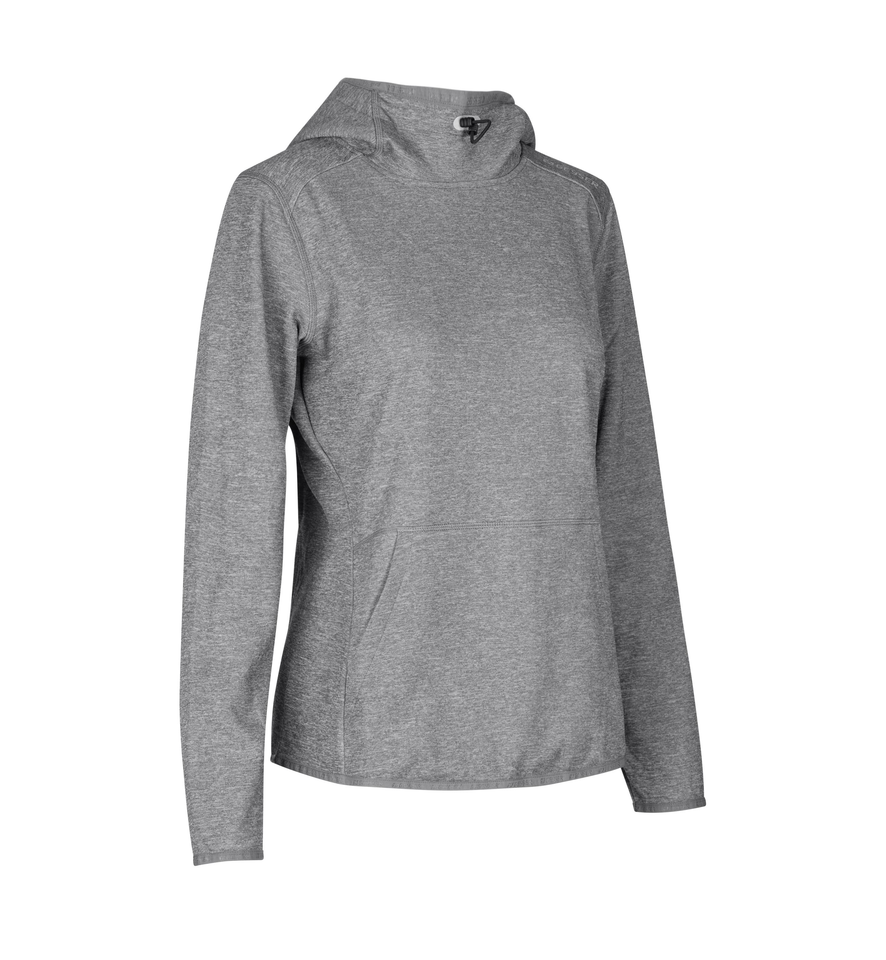 Langærmet hættetrøje i svedtransporterende interlock-kvalitet. Blød, børstet inderside i let og behagelig kvalitet. Smart snørelukning i hætten. Stor kængurulomme foran. Trøjen er ideel til både sport og fritid.