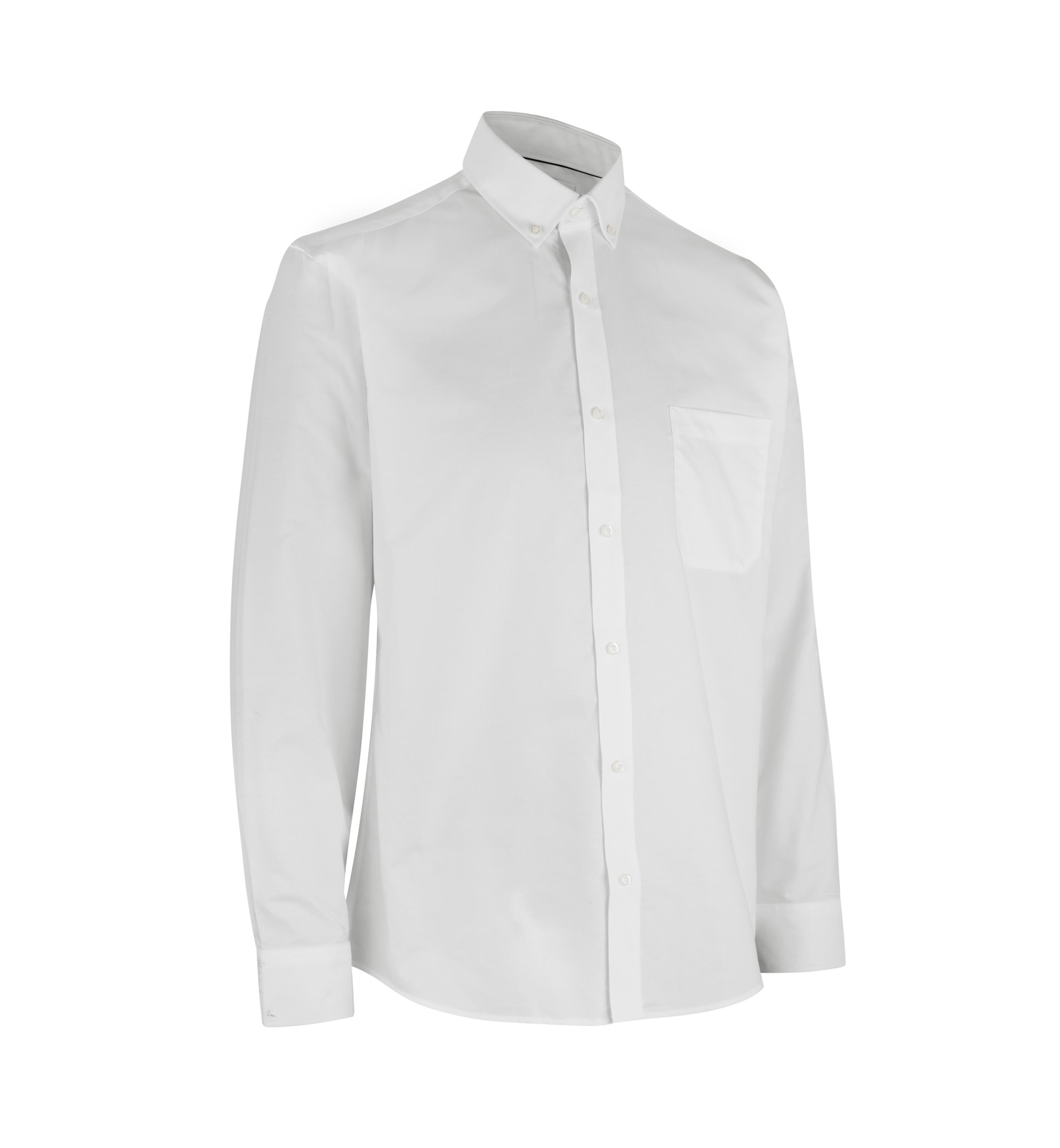 Oxford-skjorte med button down-flip i forbedret Easy Care- kvalitet. Garnfarvet pinpoint Oxford-metervare. Brystlomme.