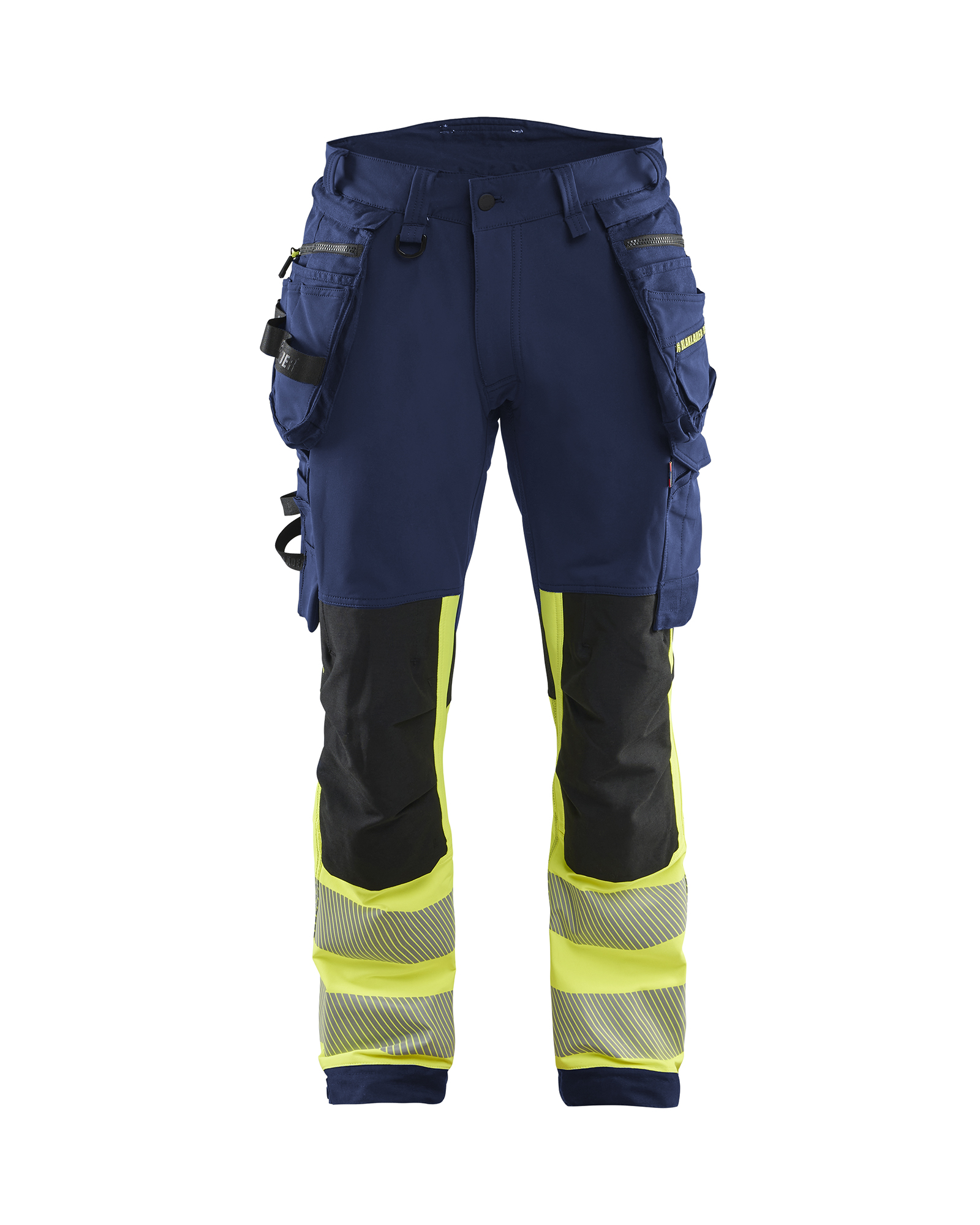 High Vis bukser i et utroligt blødt og fleksibelt 4-vejs stretch materiale, der virkelig leverer den ultimative komfort og gør dig synlig, når der er mest brug for det. Bukserne har brudte reflekser, høj talje bagpå, aftagelige sømlommer og ventilation i knæ og linning. Knælommer i CORDURA® stretch giver beskyttelse og komfort, når du arbejder på knæ. Findes også i damemodel 7025.