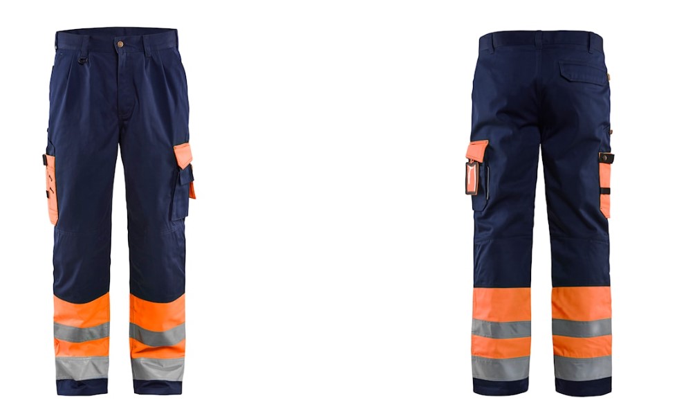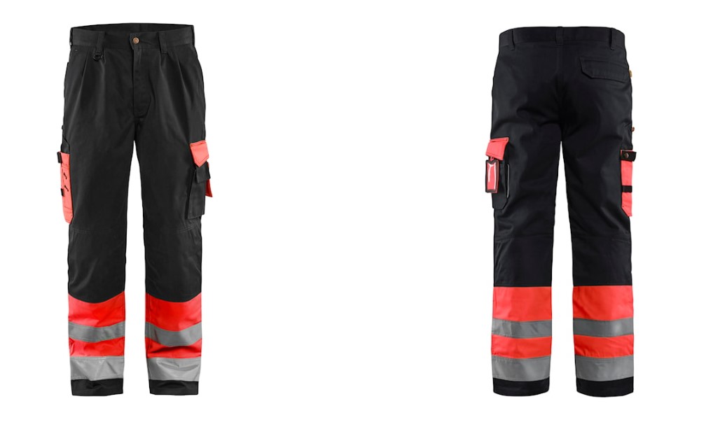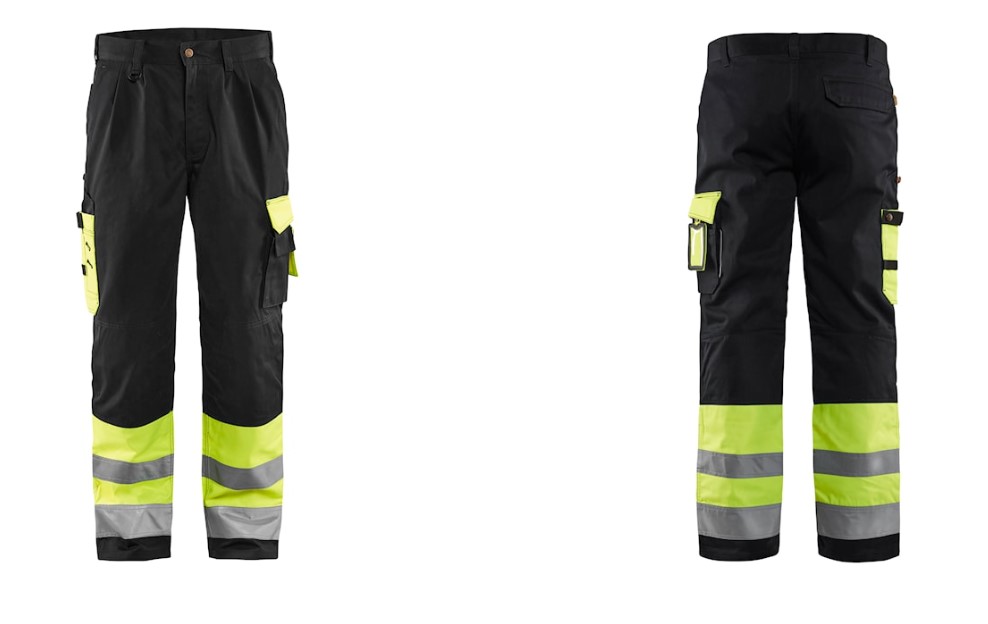 Chaufførbuks i high vis med indvendig knælommer og baglommer med læg. Certificeret: EN ISO 20471 klasse 1. Beklædning med høj synlighed.