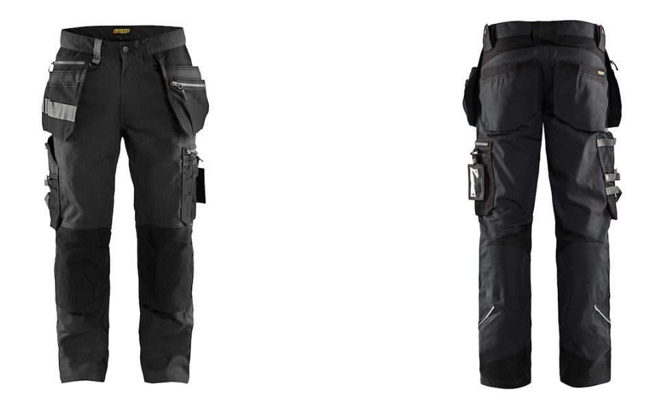 Funktionelle og komfortable håndværker bukser med sømlommer og let tilgængelig telefonlomme. Knælommer fremstillet af CORDURA® stretch materiale for perfekt pasform og holdbarhed. To baglommer med læg, hammerstrop, forstærket tommestoklomme, blyantlomme og knivholder. Formsyede ben giver en fremragende pasform.