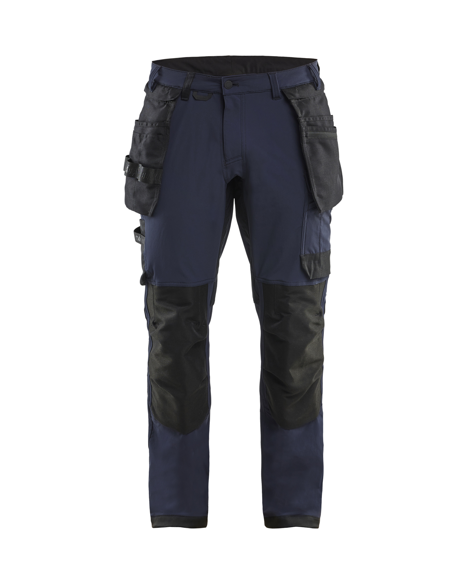 Håndværkerbukser i et let 4-vejs stretchmateriale, der virkelig leverer den ultimative komfort. Bukserne har en smallere pasform og et strammere look. Knælommer med CORDURA® stretch med åbning i bunden, aftagelige hængelommer, baglommer med læg, tommestoklomme samt hammerholder i både venstre og højre side. Findes også i damemodel 7121.