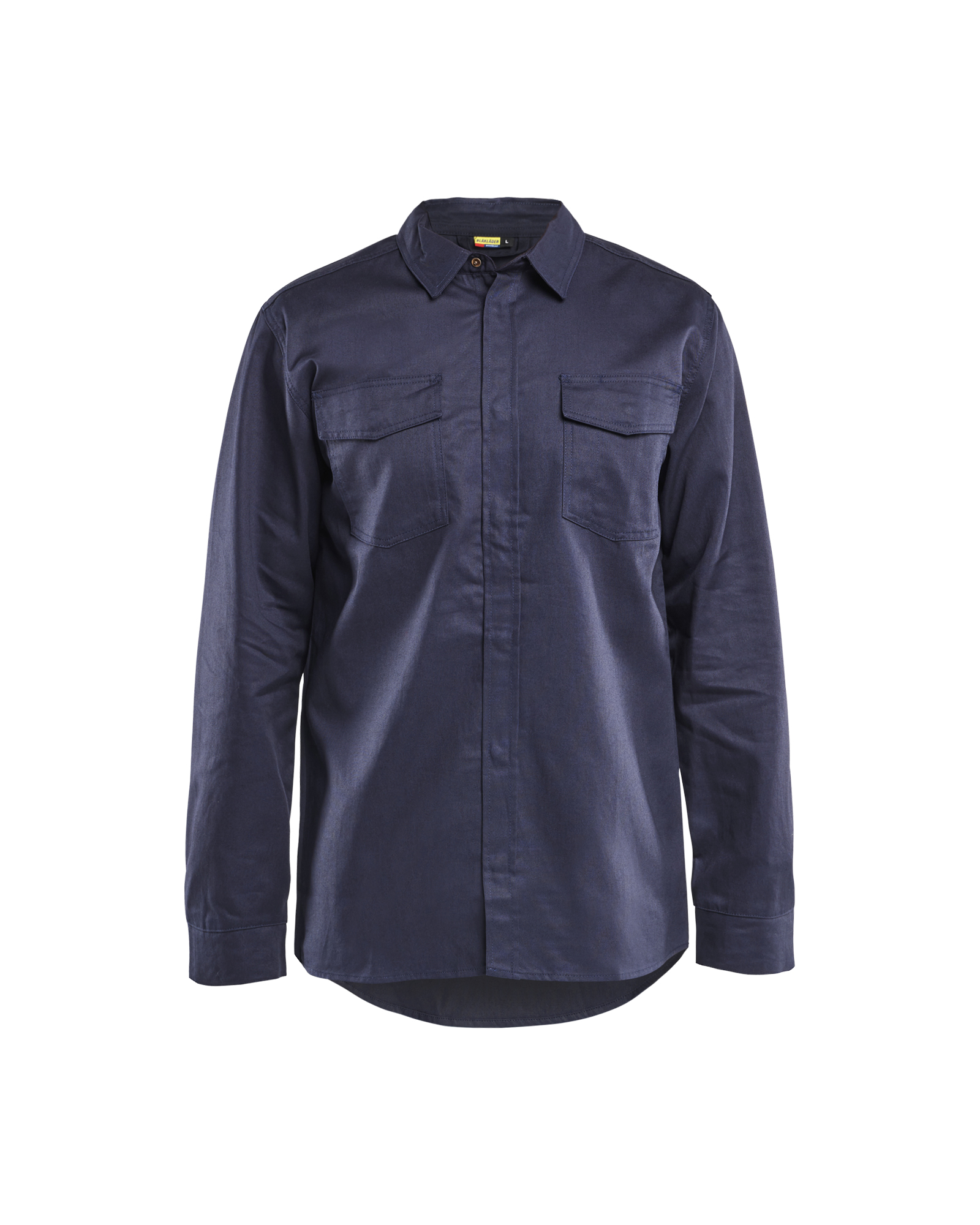 Funktionel brandhæmmende skjorte til udsatte miljøer. Denne brandhæmmende skjorte er specielt velegnet til miljøer, hvor der kræves brandhæmmende beskyttelse. Smart, funktionelt design med skjulte knapper foran og quick-release funktion. Materialet er komfortabelt med en god pasform og bevægelsesfrihed. Skjorten har to brystlommer med en praktisk blyantlomme. Certificeret i henhold til EN 1149-5, EN ISO 11612 A1, A2, B1, C1, El og IEC 61482-2, Klasse 1.