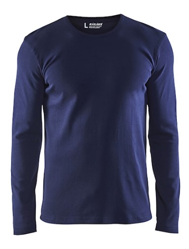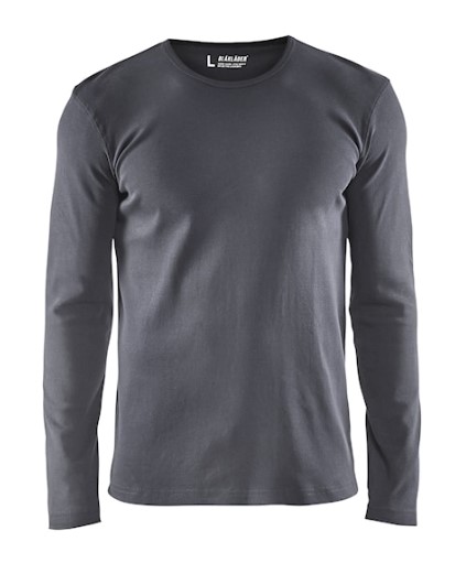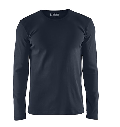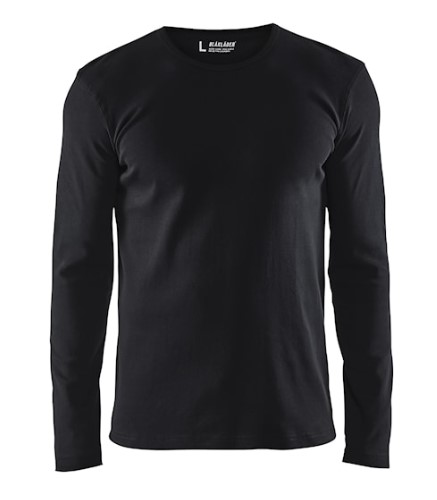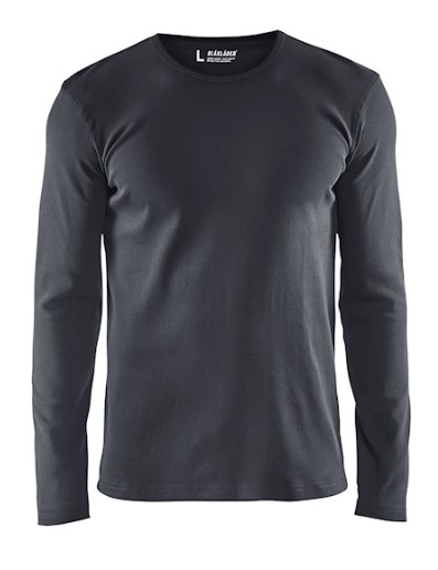 Ensfarvet t-shirt med lang ærme. Ribstrikket og rundhalset. Forstærket nak-og skuldersøm. Findes også i damemodel 3301.
