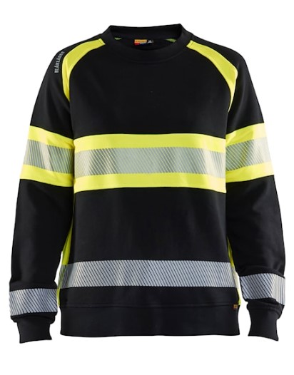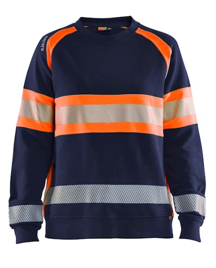 En blød, komfortabel sweatshirt i damemodel, med fleksible reflekser for ekstra god bevægelsesfrihed. Sweatshirtens mørke områder er 100 % bomuld, og high vis områderne er 100 % polyester. Certificeret i henhold til EN ISO 20471 Klasse 1. Samcertificeringsgruppe D. Findes også i herremodel 3359.