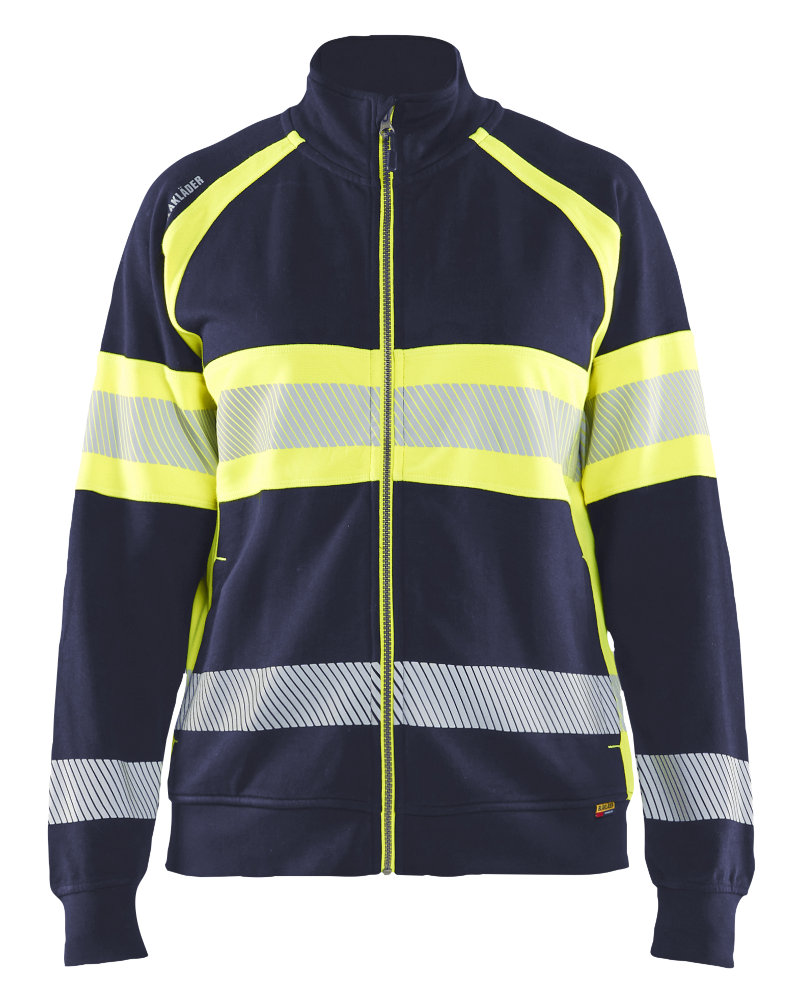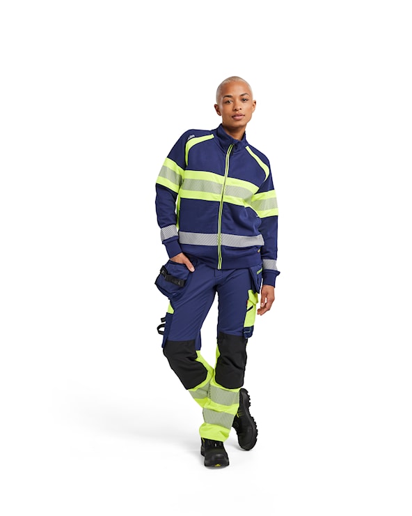En blød, behagelig high vis sweatshirt i skøn bomuldskvalitet med brudte transferreflekser for ekstra god stretch og åndbarhed. Med pasform til kvinder, sidelommer, høj krave, lynlås foran og manchetter nederst og i ærmerne for ekstra komfort. Sweatshirtens mørke del er 100% bomuld og hi-vis delen er 100% polyester. Findes også i herremodel 3551.