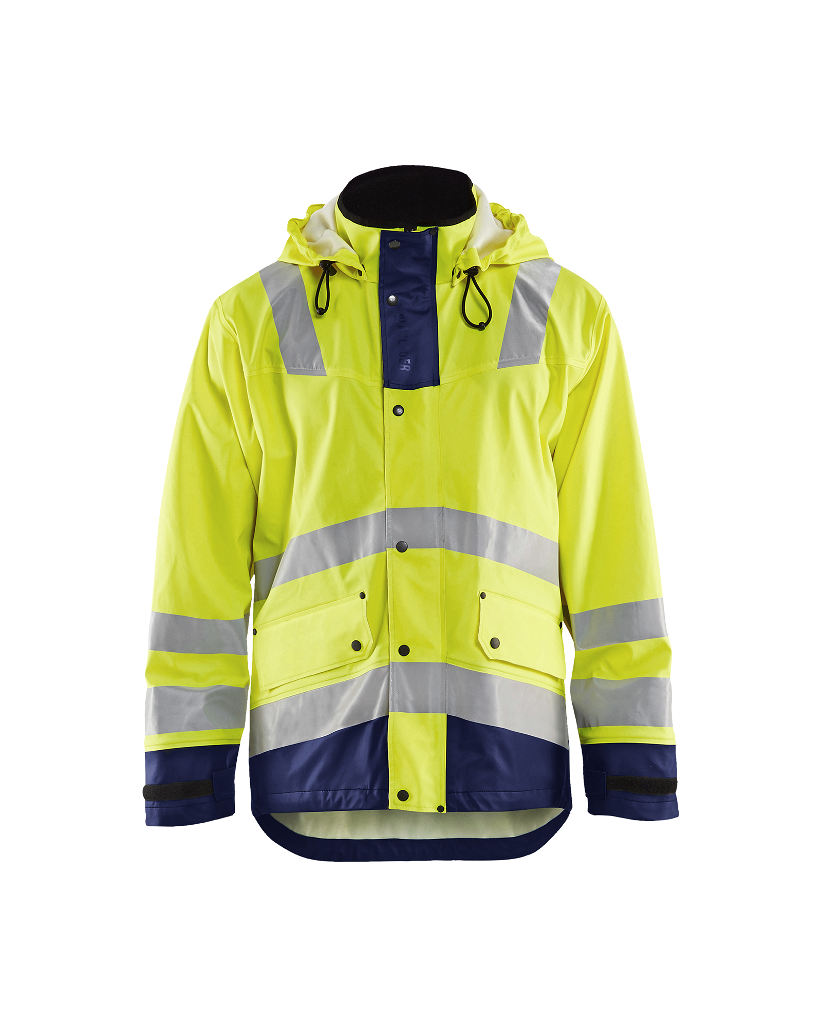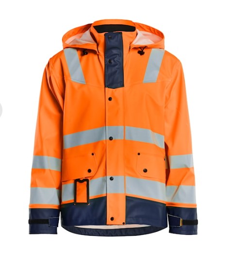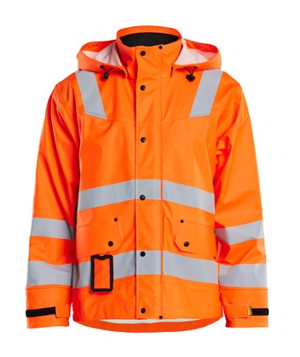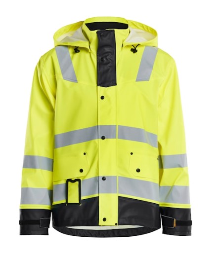 High Vis regnjakke til dig med arbejdsopgaver, der kræver slidstærkt og fleksibelt regntøj. Den er vind- og vandtæt med svejsede sømme samt ventilation i ryggen. Jakken har aftagelig justerbar hætte, blød fleeceforet krave og leveres med let tilgængelige lommer, som f.eks. aftagelig ID-kortlomme, frontlommer med klap og trykknap samt indvendig napoleonslomme. Kraftig skjult tovejs lynlås helt til kraven, frontluk med trykknapper og en stormklap, der holder vandet ude. God pasform med justerbar afslutning med snøre samt justerbar ærmer med velcro og indvendig neopren manchet, der holder kroptemperaturen selv når det er vådt. Certificeret i henhold til EN 343, beskyttelsesbeklædning mod dårligt vejr og EN ISO 20471, Klasse 3, beskyttelsesbeklædning med høj synlighed.