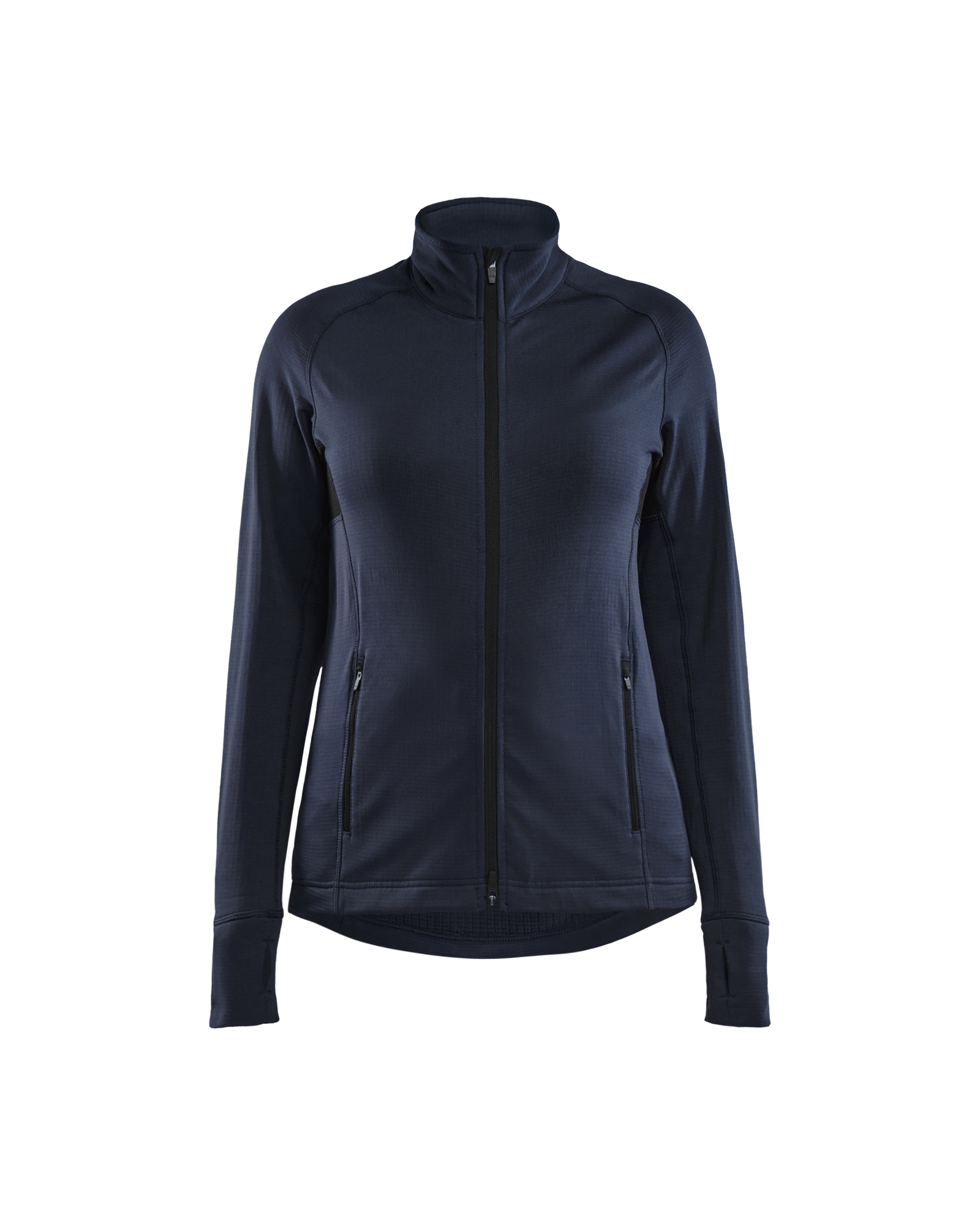 Fleecejakke i damepasform, der fungerer godt som andet lag. Grid fleecematerialet er elastisk, behageligt og meget fleksibelt. Jakken har en kropsnær pasform og mesh i armhulerne for øget ventilation. Findes også i herremodel 4735.