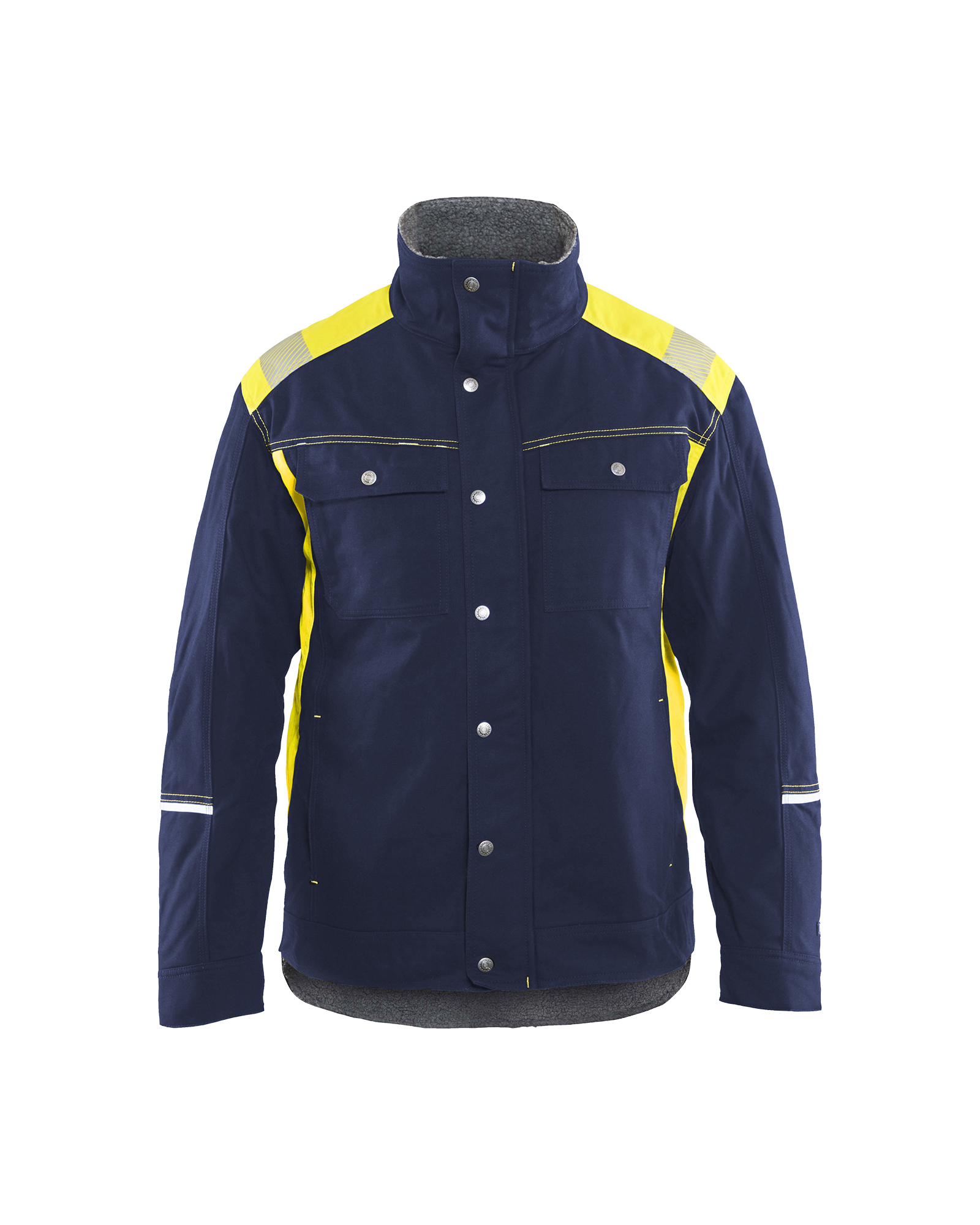 Varm vinterjakke med smarte high vis detaljer for øget synlighed. Jakken har reflekterende detaljer på krop, arme og skuldre, brystlommer med klap og knap samt forlommer med fleecefoer. For større komfort er ærmer formsyet og ryggen er forlænget.