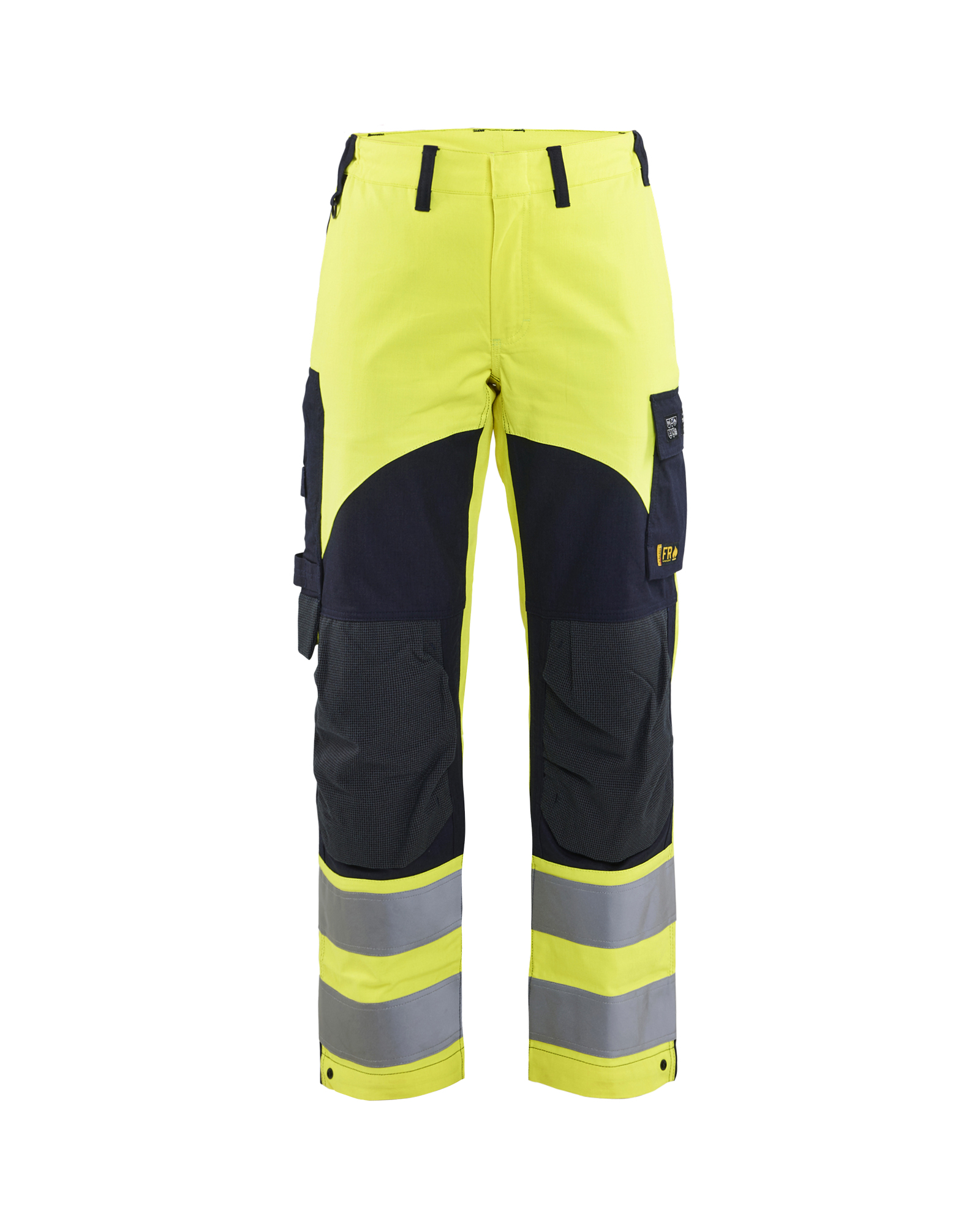 Flammehæmmende buks til damer med smarte lommer, der opfylder certificeringskravene. Materialet er et inherent ripstopmateriale med god rivfasthed, der gør det muligt for bukserne at modstå de hårde krav på arbejdspladsen. CORDURA® / Kevlar® / Protal® forstærkning på knæ og dobbelt materiale i lommerne øger slidstyrken og buksens levetid. Certificeret i henhold til EN ISO 20471 Klasse 2, EN 13034 PB (6), EN 1149-5, EN ISO 11611 Klasse 1 A1, A2, EN ISO 11612 A1, A2, B1, C1, E1, F1 og IEC 61482-2 Klasse 1. ATPV: 11,9cal/cm², HAF: 79,3%, LOI: 29,6%. Findes også i herremodel 1588.