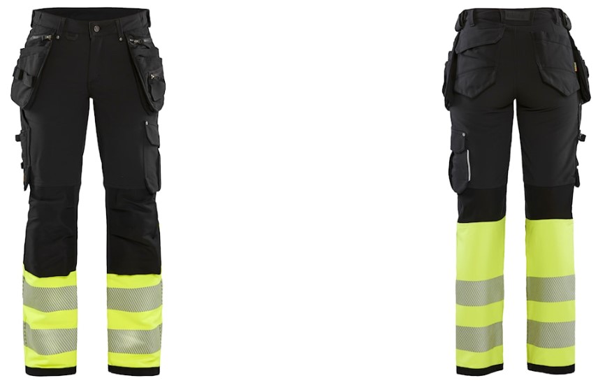 Fleksible og komfortable high vis bukser i en smallere dame pasform, ekstremt bløde og med stor bevægelsesfrihed. Bukserne er designet til at klare krævende opgaver uden at gå på kompromis med komfort og pasform. Materialet er en blød 4-vejs stretch, der både er stærkt og fleksibelt i alle retninger. Bukserne har avancerede detaljer og praktiske lommer med CORDURA® forstærkning, lårlomme med lynlås og læg, tommestoklomme, frontlommer, baglommer med klap og funktionelle værktøjsholdere såsom stropper til hammerholdere. Knælommerne er forstærket med CORDURA®-stretch udvendig og stretch indvendig for øget bevægelsesfrihed. Blødt stretch mesh i knæhaserne for god ventilation. Benafslutning med CORDURA®-forstærkning giver effektiv beskyttelse mod slitage. Certificeret i henhold til EN ISO 20471 klasse 1, beskyttelsesbeklædning med høj synlighed. Findes også i herremodel 1993.