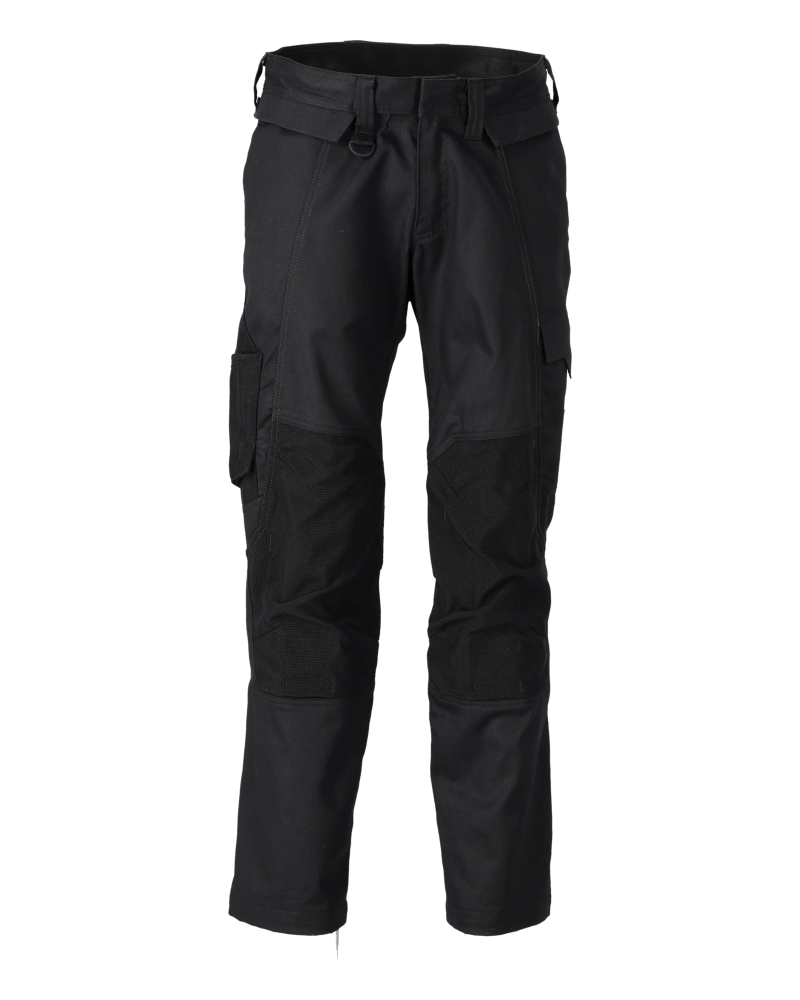 Tonålssømme på ben og i skridt. Lav talje. Bæltestropper. Forberedt til hængelommer 19450-126, der påsættes med knapper. Knaplukning er skjult. Gylp med lynlås. Bukseben er ergonomisk formede. Forlommer. Baglommer. Lårlomme med telefonlomme og klap med skjulte trykknapper. Tommestoklomme er CORDURA®-forstærket. Knælommer i slidstærk CORDURA® (500 D). Nem, individuel regulering af knælommens højde. Reflekseffekter. Vi anbefaler 00418-100, 00718-100, 50451-916 og 20118-915 knæpuder til denne model. Samcertificeret med knæpudetype SHORT eller LONG i henhold til EN 14404. Skridtlængden kan forøges med 3 cm ved at fjerne den indvendige, røde syning ved fod.