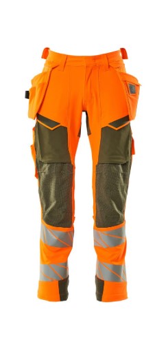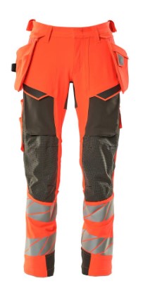 Fluorescerende og med reflekser. Har en vandafvisende finish. Tofarvet. Ultimativt strækstof med lav vægt og god slidstyrke. Tonålssømme på ben og i skridt. Knaplukning er skjult. Bukseben er ergonomisk formede. Hængelommer er aftagelige. Trykknaplukning på inderste hængelomme. Hængelomme med foret telefonlomme og magnetlukning. Hængelommer med Kevlar® og CORDURA®-forstærkninger. Bæltestropper. Værktøjsstrop i begge sider af linning. Gylp med lynlås. Forlommer. Baglommer med forstærkninger og klapper. Skjult hammerstrop i begge sider. Knap (aftagelig) til montering af knivholder. Tommestoklomme med Kevlar®-forstærkninger. Lommer med klap foran på lår. Knælommer i CORDURA® to-vejs strækstof med ventilation. Nem, individuel regulering af knælommens højde. Lårlomme med foret telefonlomme, magnetlukning og integreret ID-kortholder. ID-kortholder er aftagelig. Lodret lynlås med mulighed for ventilation på baglår. Med printeffekter. Skridtlængden kan forøges med 3 cm ved at fjerne den indvendige, røde syning ved fod. Vi anbefaler 00418-100, 00718-100, 50451-916 og 20118-915 knæpuder til denne model. Samcertificeret med knæpudetype SHORT eller LONG i henhold til EN 14404.