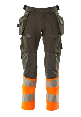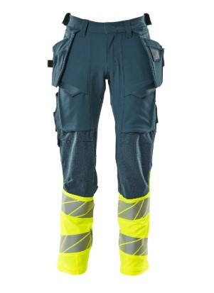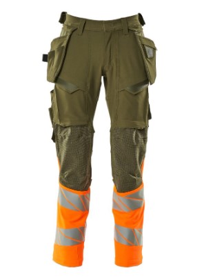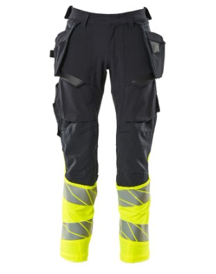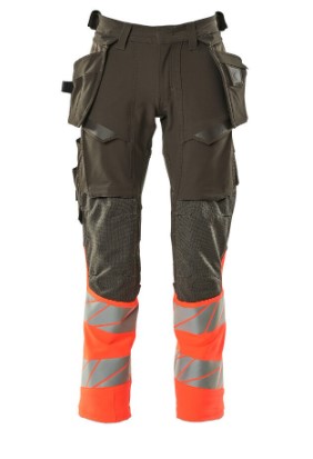 Fluorescerende kontrastfarve og med reflekser. Har en vandafvisende finish. Tofarvet. Ultimativt strækstof med lav vægt og god slidstyrke. Tonålssømme på ben og i skridt. Knaplukning er skjult. Bukseben er ergonomisk formede. Hængelommer er aftagelige. Trykknaplukning på inderste hængelomme. Hængelomme med foret telefonlomme og magnetlukning. Hængelommer med Kevlar® og CORDURA®-forstærkninger. Bæltestropper. Værktøjsstrop i begge sider af linning. Gylp med lynlås. Forlommer. Baglommer med forstærkninger og klapper. Skjult hammerstrop i begge sider. Knap (aftagelig) til montering af knivholder. Tommestoklomme med Kevlar®-forstærkninger. Lommer med klap foran på lår. Knælommer i CORDURA® to-vejs strækstof med ventilation. Nem, individuel regulering af knælommens højde. Lårlomme med foret telefonlomme, magnetlukning og integreret ID-kortholder. ID-kortholder er aftagelig. Lodret lynlås med mulighed for ventilation på baglår. Med printeffekter. Skridtlængden kan forøges med 3 cm ved at fjerne den indvendige, røde syning ved fod. Vi anbefaler 00418-100, 00718-100, 50451-916 og 20118-915 knæpuder til denne model. Samcertificeret med knæpudetype SHORT eller LONG i henhold til EN 14404.