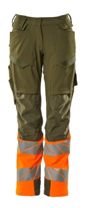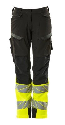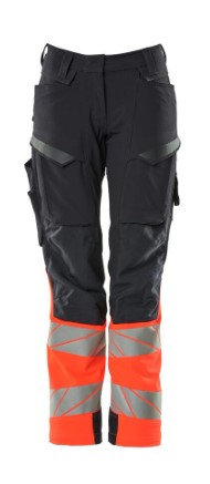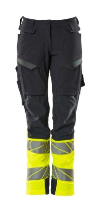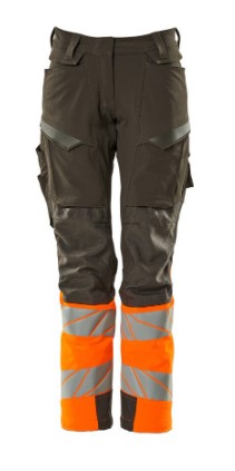 Damepasform DIAMOND. Fluorescerende kontrastfarve og med reflekser. Har en vandafvisende finish. Tofarvet. Ultimativt strækstof med lav vægt og god slidstyrke. Tonålssømme på ben og i skridt. Knaplukning er skjult. Lukning med lynlås. Bæltestropper. Bukseben er ergonomisk formede. Forlommer. Baglommer med forstærkninger. Skjult hammerstrop i højre side. Forberedt til hængelommer 19450-126, der påsættes med knapper. Tommestoklomme med Kevlar®-forstærkninger. Lommer med klap foran på lår. Knælommer i super slidstærk CORDURA® (1000 D) er regulerbare. Nem, individuel regulering af knælommens højde. Lårlomme med foret telefonlomme, skjult trykknaplukning og integreret ID-kortholder. ID-kortholder er aftagelig. Lodret lynlås med mulighed for ventilation på baglår. Med printeffekter. Skridtlængden kan forøges med 3 cm ved at fjerne den indvendige, røde syning ved fod. Vi anbefaler 00418-100, 00718-100, 50451-916 og 20118-915 knæpuder til denne model. Samcertificeret med knæpudetype SHORT eller LONG i henhold til EN 14404.