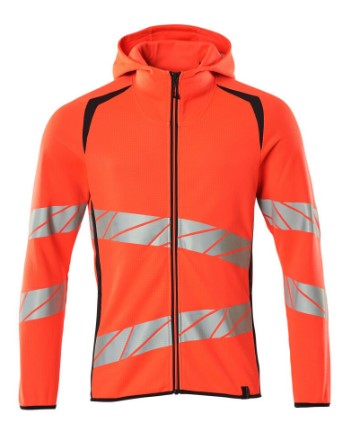 Premium. Reflekseffekter. Tofarvet. Moderne pasform. Behagelig bomuldsinderside og slidstærk polyester med stræk på ydersiden. Kvadratisk jaquard mønster. Refleksen er elastisk. Lynlås er gennemgående. Forlommer med lynlås. Inderlommer. Nakkebelægning. Elastikbånd ved håndled og i nedre kant.