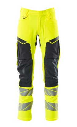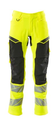 Fluorescerende og med reflekser. Har en vandafvisende finish. Tofarvet. Ultimativt strækstof med lav vægt og god slidstyrke. Tonålssømme på ben og i skridt. Knaplukning er skjult. Bukseben er ergonomisk formede. Bæltestropper. D-ring. Gylp med lynlås. Forlommer. Baglommer med forstærkninger. Hammerstrop er regulerbar. Tommestoklomme er forstærket. Knap til montering af kniv. Lommer med klap foran på lår. Knælommer i slidstærk CORDURA® (500 D) er regulerbare. Lårlomme med telefonlomme og klap med lynlukning. Med printeffekter. Forberedt til hængelommer 19450-126, der påsættes med knapper. Skridtlængden kan forøges med 3 cm ved at fjerne den indvendige, røde syning ved fod. Vi anbefaler 00418-100, 00718-100, 50451-916 og 20118-915 knæpuder til denne model. Samcertificeret med knæpudetype SHORT eller LONG i henhold til EN 14404.