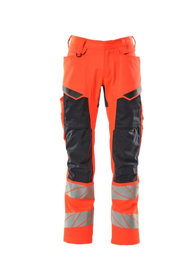 Fluorescerende og med reflekser. Tofarvet. Dele af produktet er af strækstof. Kombination af let metervare i kvalitet 236 og ULTIMATE STRETCH i kvalitet 511. Tonålssømme på ben og i skridt. Knaplukning er skjult. Bukseben er ergonomisk formede. Bæltestropper. D-ring. Gylp med lynlås. Forlommer. Baglommer med forstærkninger. Skjult hammerstrop i højre side. Tommestoklomme er forstærket. Lommer med klap foran på lår. Knælommer i slidstærk CORDURA® (500 D) er regulerbare. Nem, individuel regulering af knælommens højde. Lårlomme med telefonlomme og klap med skjulte trykknapper. Med printeffekter. Forberedt til hængelommer 19450-126, der påsættes med knapper. Skridtlængden kan forøges med 3 cm ved at fjerne den indvendige, røde syning ved fod. Vi anbefaler 00418-100, 00718-100, 50451-916 og 20118-915 knæpuder til denne model. Samcertificeret med knæpudetype SHORT eller LONG i henhold til EN 14404.