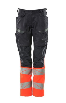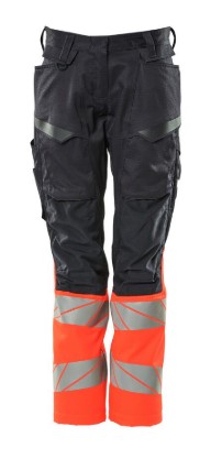 Damepasform DIAMOND. Fluorescerende kontrastfarve og med reflekser. Tofarvet. Dele af produktet er af strækstof. Kombination af let metervare i kvalitet 236 og ULTIMATE STRETCH i kvalitet 511. Tonålssømme på ben og i skridt. Knaplukning er skjult. Lukning med lynlås. Bukseben er ergonomisk formede. Bæltestropper. D-ring. Forlommer. Baglommer med forstærkninger. Skjult hammerstrop i højre side. Tommestoklomme er forstærket. Lommer med klap foran på lår. Knælommer i slidstærk CORDURA® (500 D) er regulerbare. Nem, individuel regulering af knælommens højde. Lårlomme med telefonlomme og klap med skjulte trykknapper. Med printeffekter. Forberedt til hængelommer 19450-126, der påsættes med knapper. Skridtlængden kan forøges med 3 cm ved at fjerne den indvendige, røde syning ved fod. Vi anbefaler 00418-100, 00718-100, 50451-916 og 20118-915 knæpuder til denne model. Samcertificeret med knæpudetype SHORT eller LONG i henhold til EN 14404.
