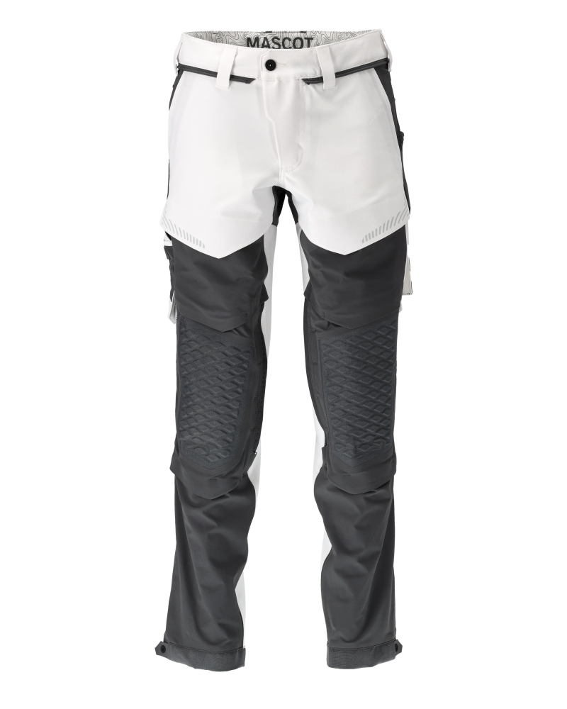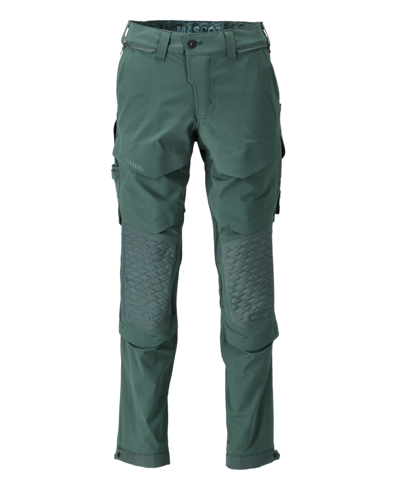 Ultimativt strækstof med lav vægt og høj slidstyrke. Har en vandafvisende finish. Forberedt til hængelommer med Click Pocket System. Tonålssømme og trenålssømme på ben og i skridt. Bukseben er ergonomisk formede. Ventilationshuller i knæhase og bag på ved linning. Bæltestropper. Skjult hammerstrop i venstre side. Gylp med lynlås. Net med ventilation i siderne - åbnes med lynlås. Forlommer. Baglommer, den ene med klap. Tommestoklomme er CORDURA®-forstærket og med lille lomme uden på. Knap (aftagelig) til montering af knivholder. Lårlomme med telefonlomme med magnetlukning og integreret ID-kortholder. ID-kortholder er aftagelig. Lommer med klap foran på lår. Regulerbare knælommer med ventilation i super slidstærk CORDURA®. Nem, individuel regulering af knælommens højde. Trykknapregulering ved fod. Reflekseffekter. Vi anbefaler 00418-100, 00718-100, 50451-916 og 20118-915 knæpuder til denne model. Samcertificeret med knæpudetype SHORT eller LONG i henhold til EN 14404.