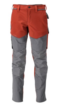Let kvalitet. Dele af produktet er af strækstof. Forberedt til hængelommer med Click Pocket System. Tonålssømme og trenålssømme på ben og i skridt. Bukseben er ergonomisk formede. Bæltestropper. Gylp med lynlås. Forlommer. Baglommer med forstærkninger. Hammerstrop er regulerbar. Tommestoklomme er CORDURA®-forstærket og med lille lomme uden på. Lårlomme med klap og magnetlukning. Knælommer i slidstærk CORDURA® (500 D) er regulerbare. Nem, individuel regulering af knælommens højde. Reflekseffekter. Skridtlængden kan forøges med 3 cm ved at fjerne den indvendige, røde syning ved fod. Vi anbefaler 00418-100, 00718-100, 50451-916 og 20118-915 knæpuder til denne model. Samcertificeret med knæpudetype SHORT eller LONG i henhold til EN 14404.