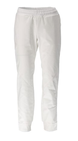 Elastik og snøreregulering i talje. Forlommer med skjult trykknaplukning. Trykknapper af metal. Rib ved ankler. Farvemarkering til hver størrelse. Forberedt til isætning af personmærke samt HF-chip og UHF-chip. Produktet kan industrivaskes.