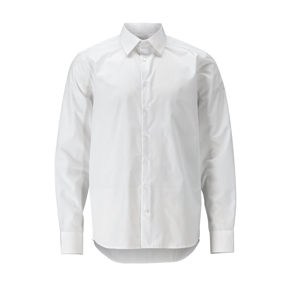 Basic. Smal pasform. Indsnit i ryggen som gør, at skjorten følger kroppens bevægelser og sidder pænt over ryggen. Krave med flipstivere. Lukning med knapper. Manchetter er regulerbare.
