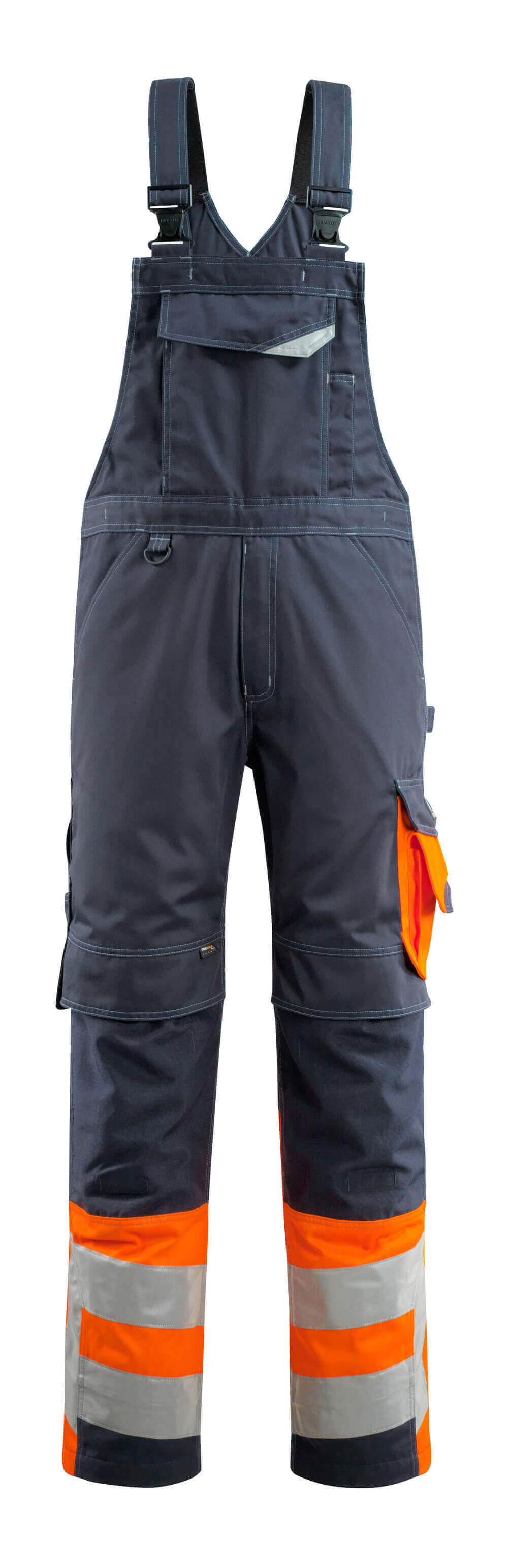 Fluorescerende kontrastfarve og med reflekser. Overfladebehandlingen gør produktet smudsafvisende. Tofarvet. Trenålssømme på ben og i skridt. Bukseben er ergonomisk formede. Seler er regulerbare og med kort, kraftig elastik og plastikspænder. Seleender kan gemmes væk bag på smæk ved hjælp af små stropper. Smæklomme med penåbning, telefonlomme med lynlås og klap med skjulte trykknapper. Linning er regulerbar. Bæltestropper. Gylp med lynlås. D-ring. Forlommer. Baglommer med forstærkninger, klap og skjulte trykknapper. Hammerstrop er regulerbar. Lårlomme med forstærkninger og ekstra lommer - en indvendig telefonlomme samt en udvendig telefonlomme med klap og magnetlukning. Tommestoklomme med CORDURA®-forstærket indgang. Knælommer i slidstærk CORDURA® (500 D) er regulerbare og med klap og indstik fra oven. Lodrette refleksstriber på ydersiden af benene for ekstra synlighed. Skridtlængden kan forøges med 3 cm ved at fjerne den indvendige, røde syning ved fod. Vi anbefaler 00418-100, 00718-100, 50451-916 og 20118-915 knæpuder til denne model. Samcertificeret med knæpudetype SHORT eller LONG i henhold til EN 14404.