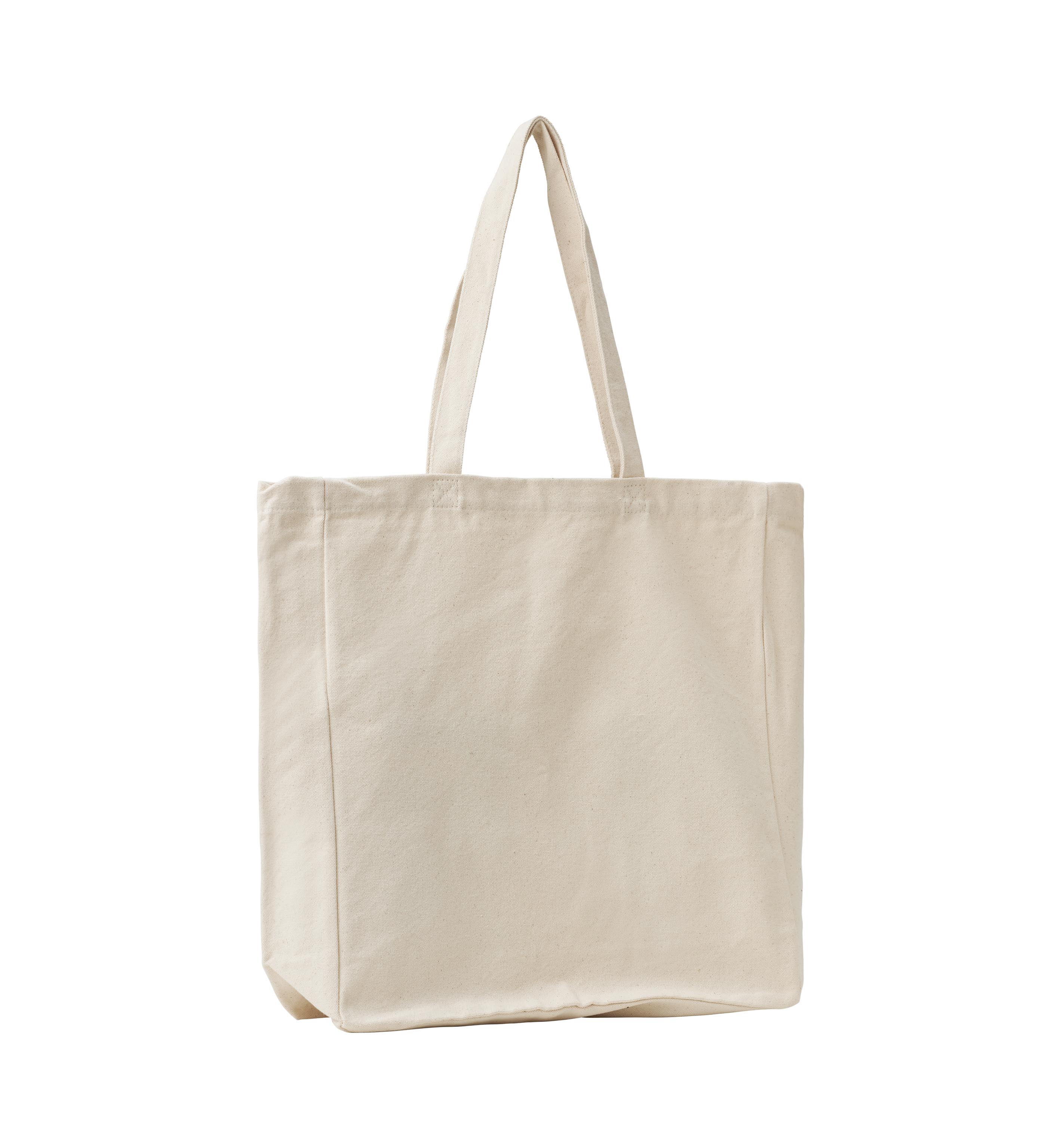 Bomuldsindkøbspose. Ekstra lange håndtag, så den også kan bruges som skuldertaske. Forstærkninger ved håndtag. 42 x 38 x 12 cm.